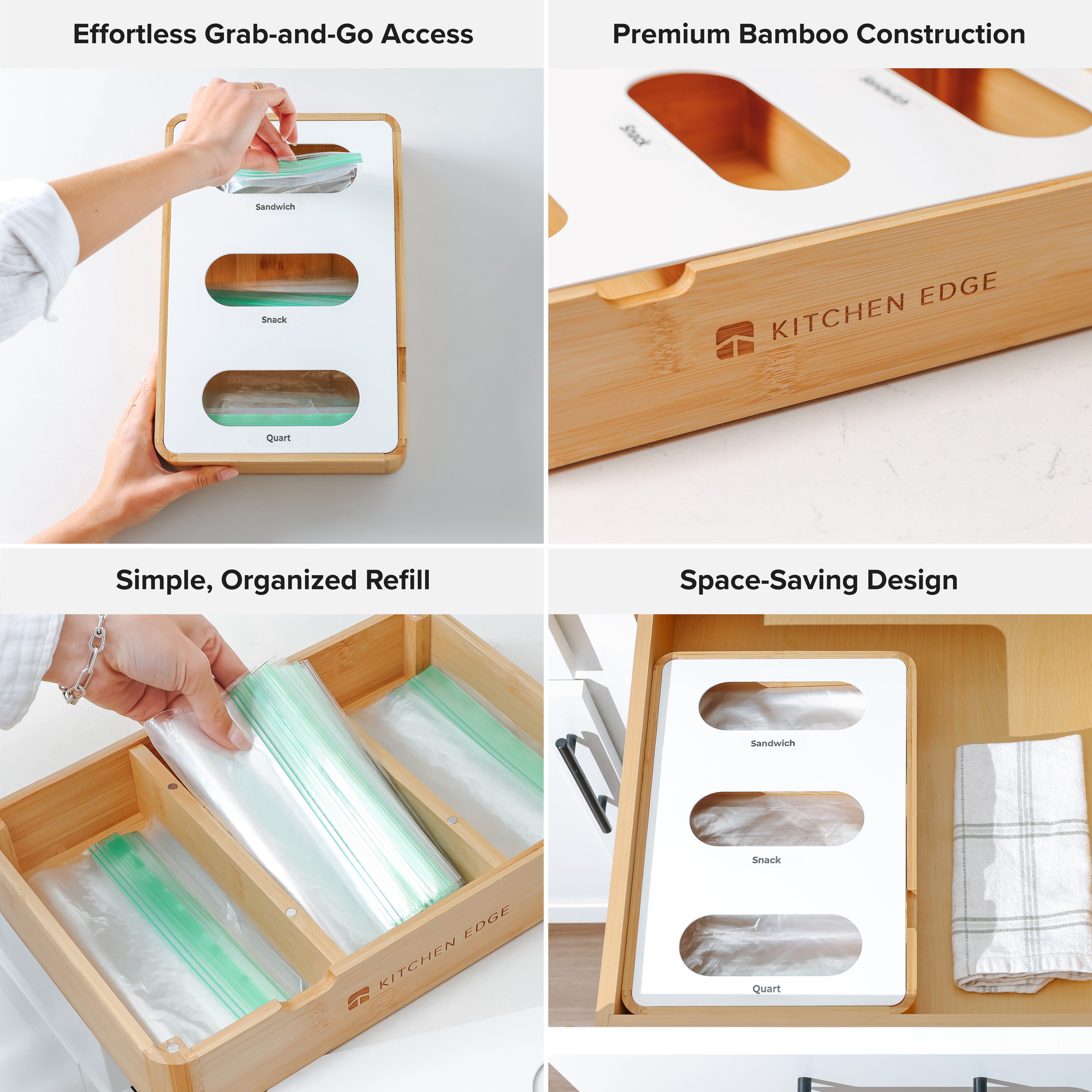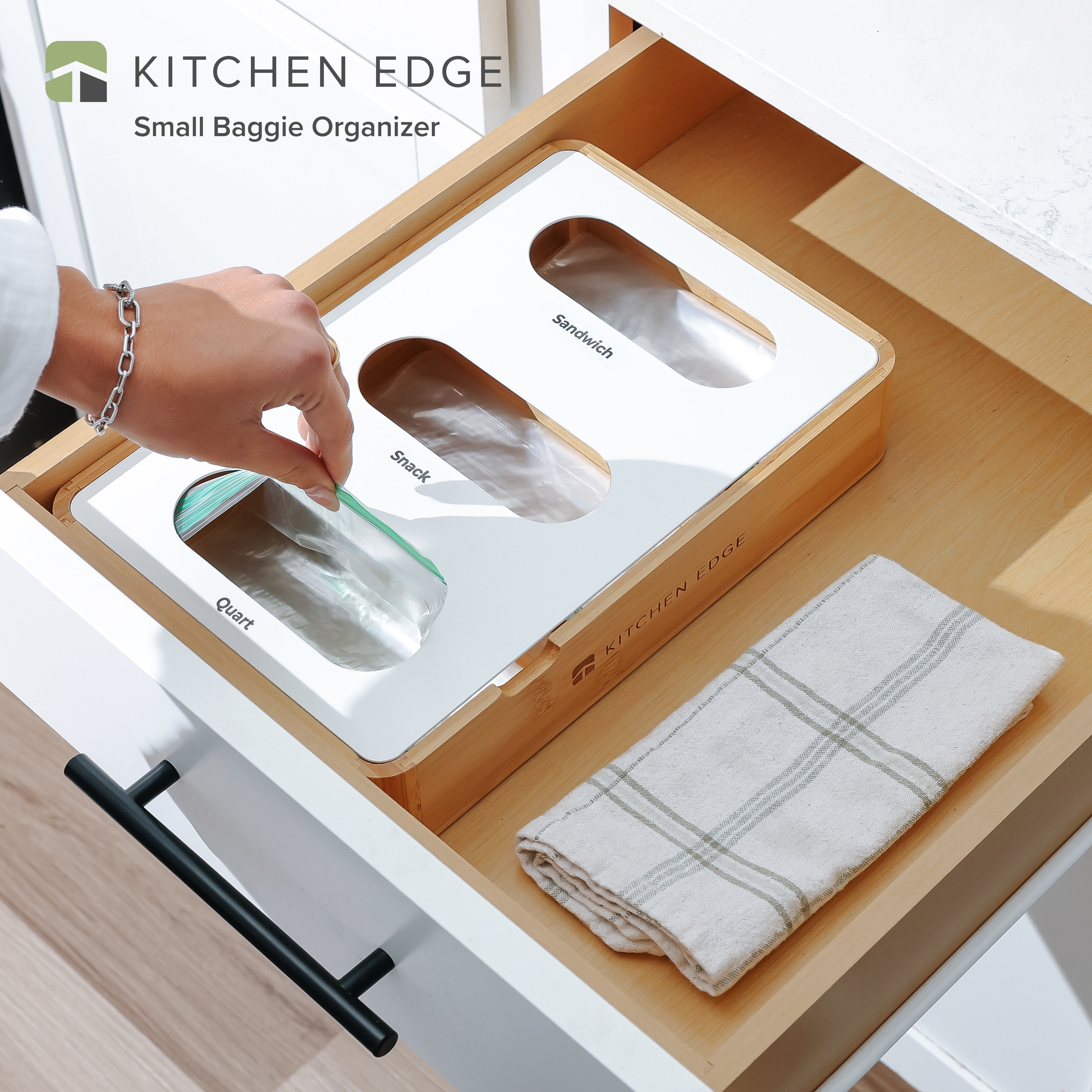 Three deep slots hold snack, sandwich, and quart bags, creating a simple, effective bag organizer for daily use.