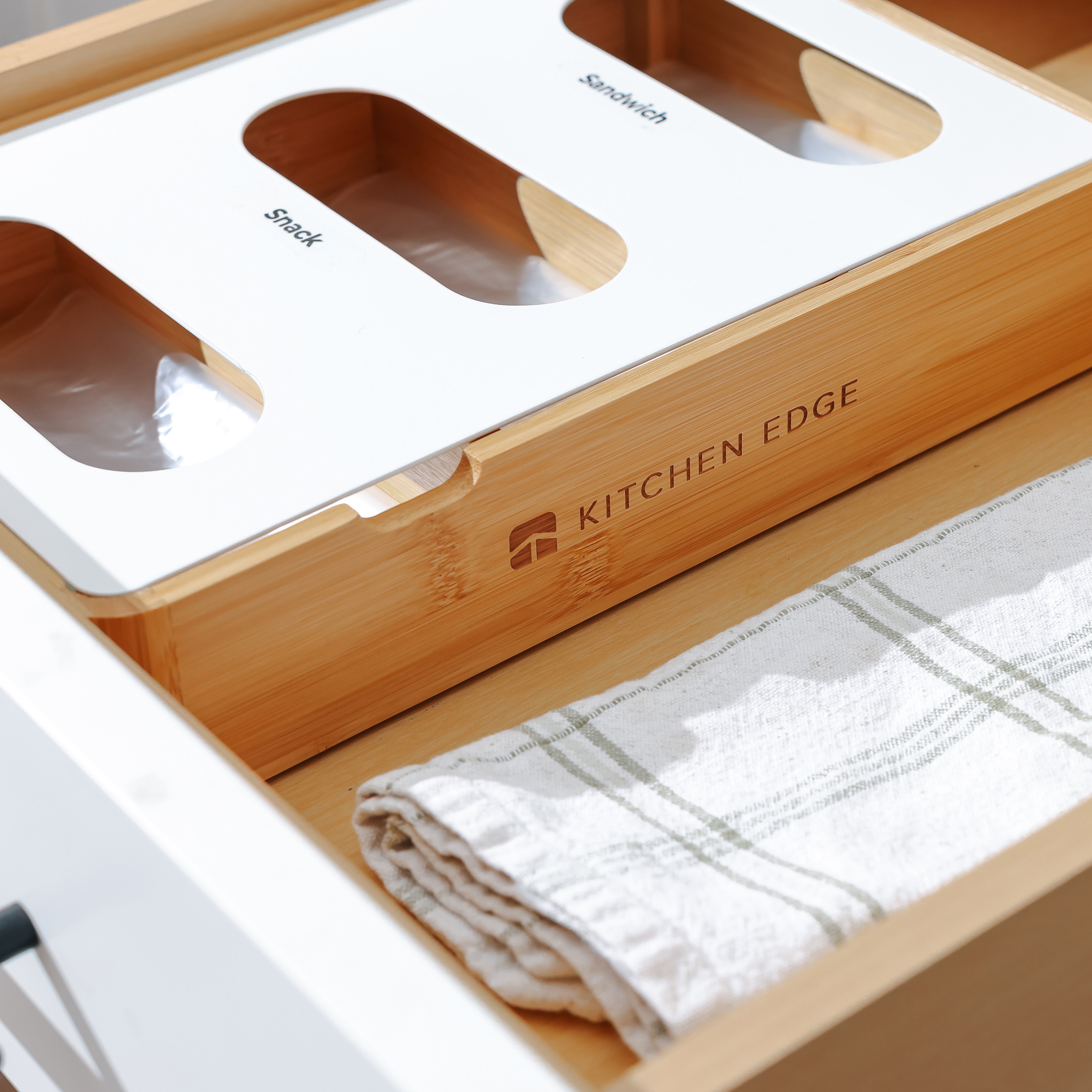 3 Slot Small Ziplock Bag Organizer - Natural Bamboo & White Metal