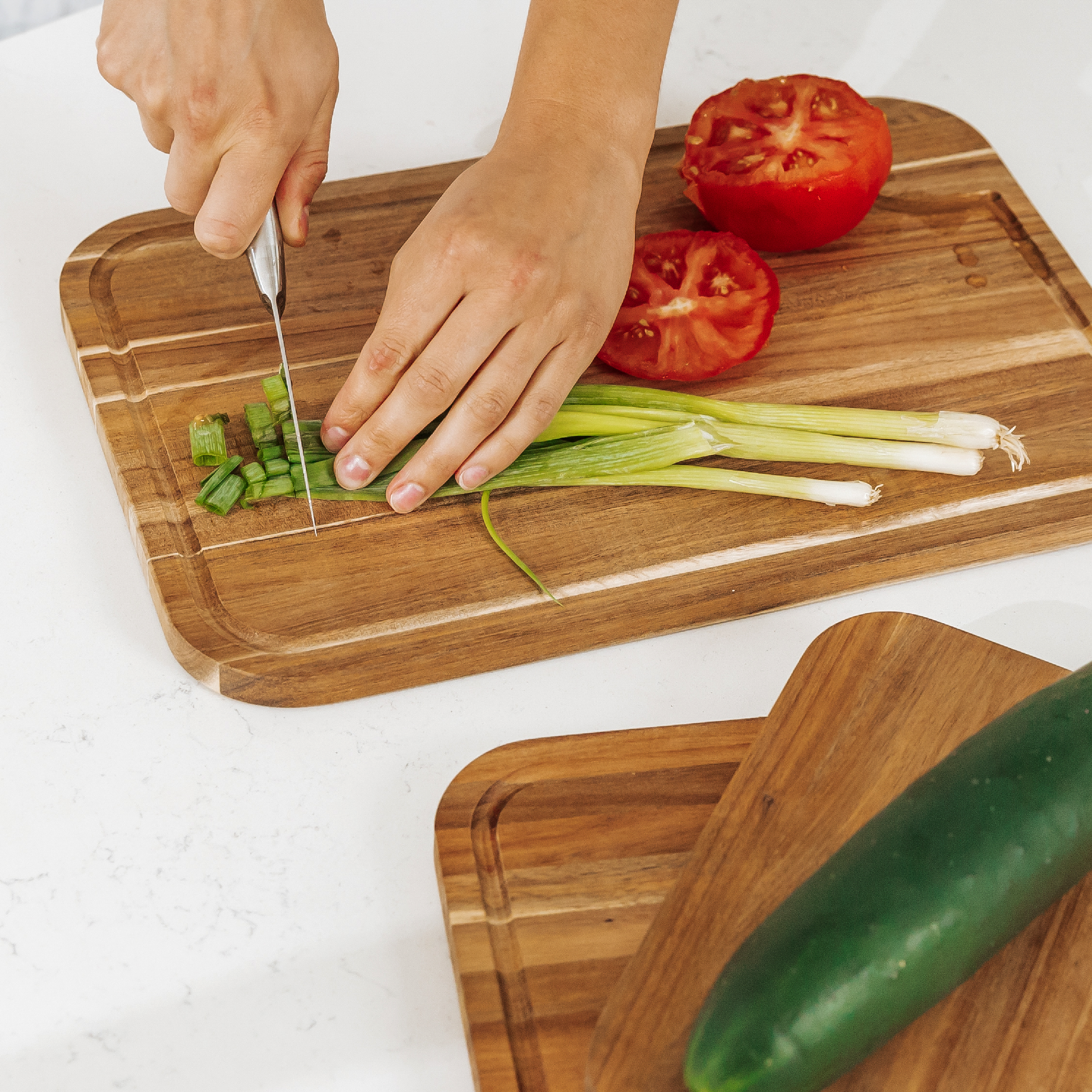 Enjoy three distinct cutting board sizes, giving you more flexibility in your food prep. Select the best size for your task - from dicing small herbs to carving large roasts, you’ll have the right board for the right job.