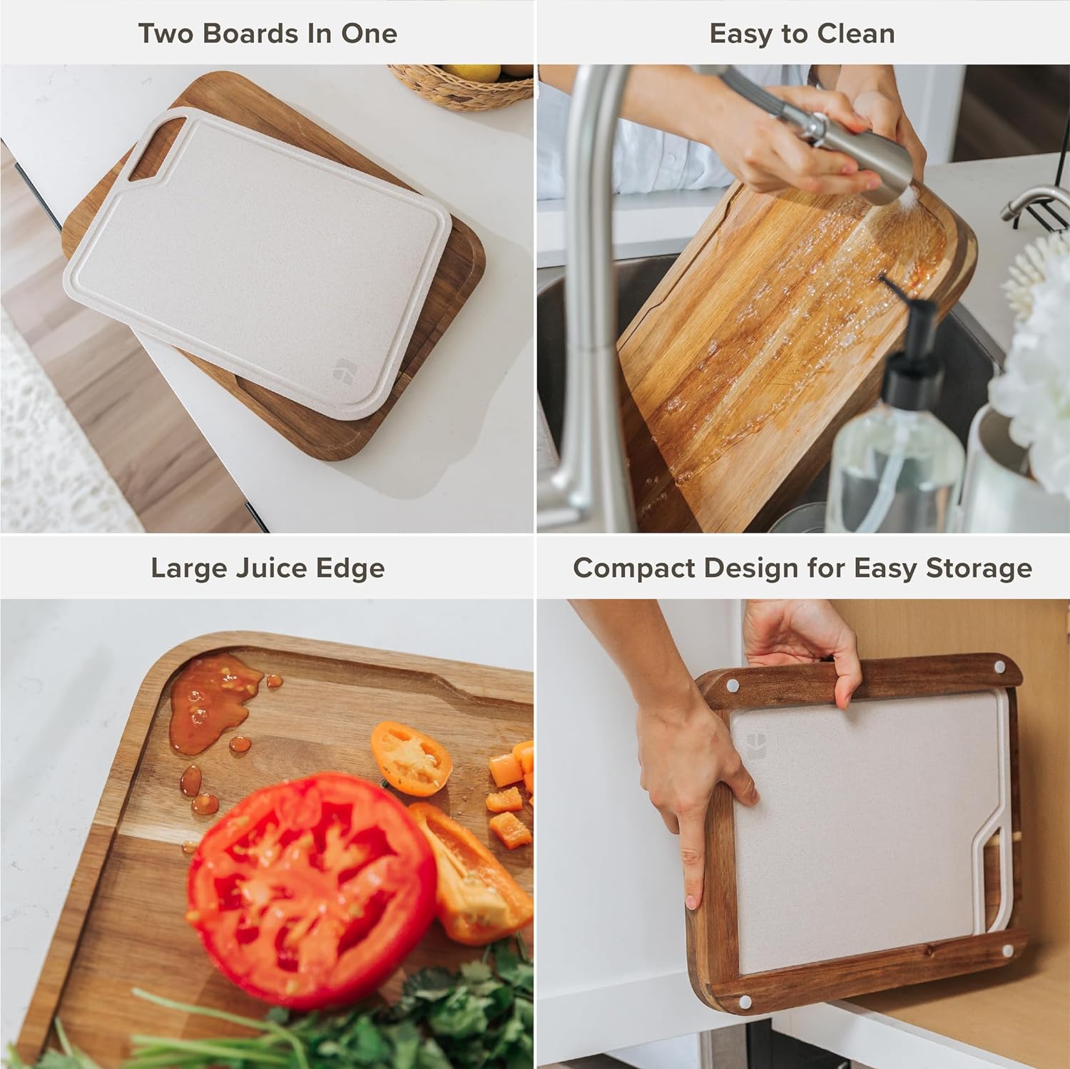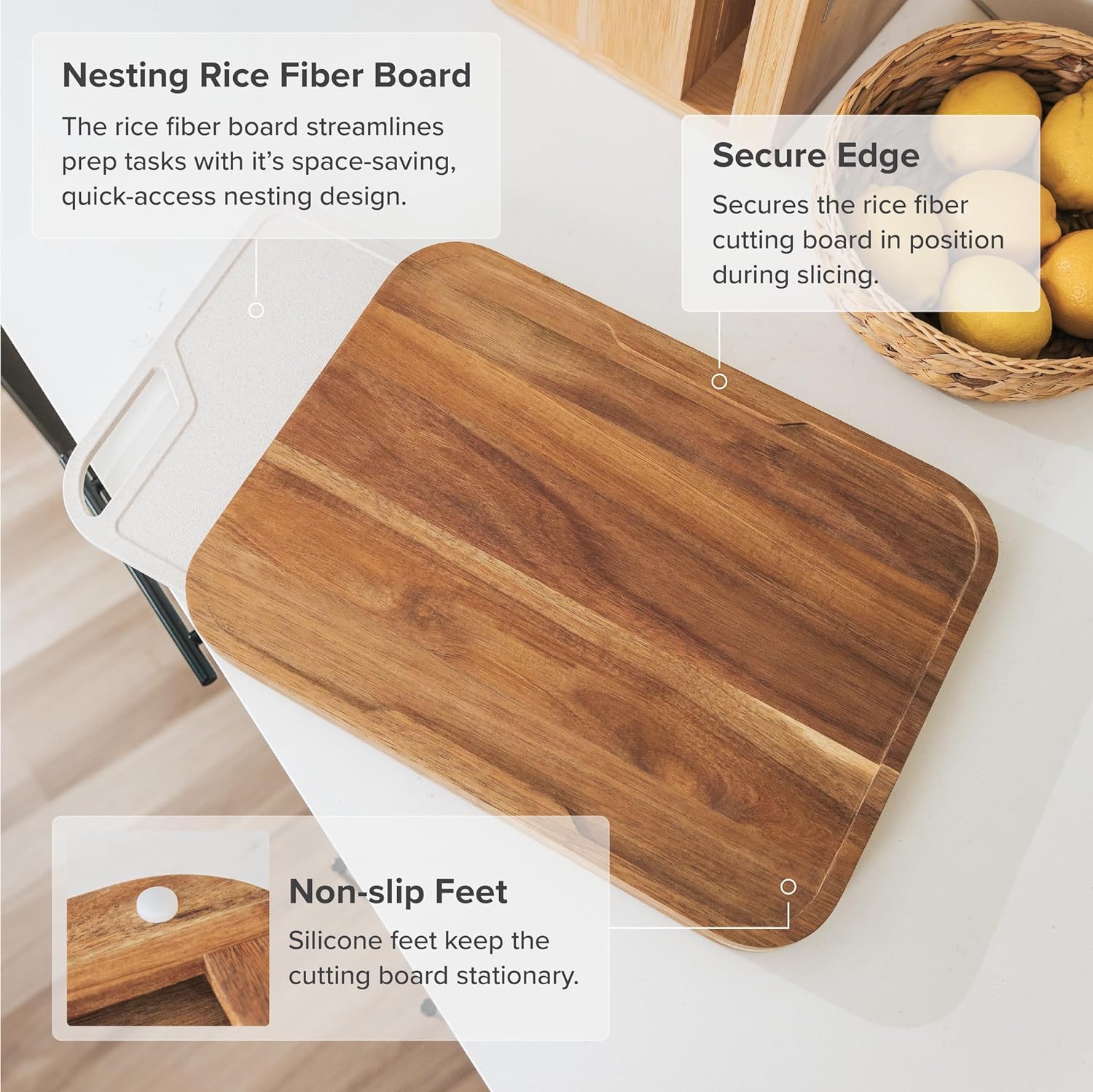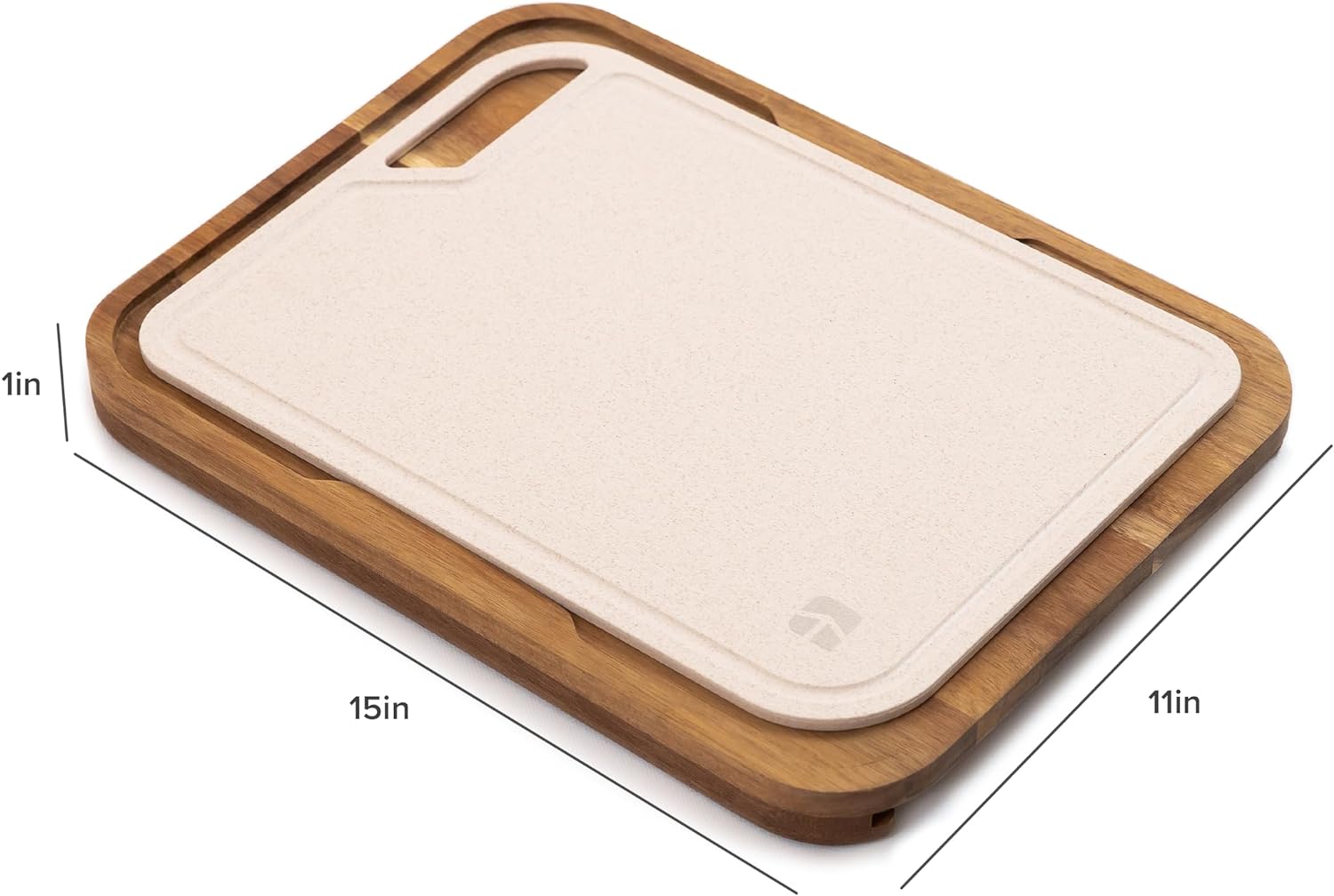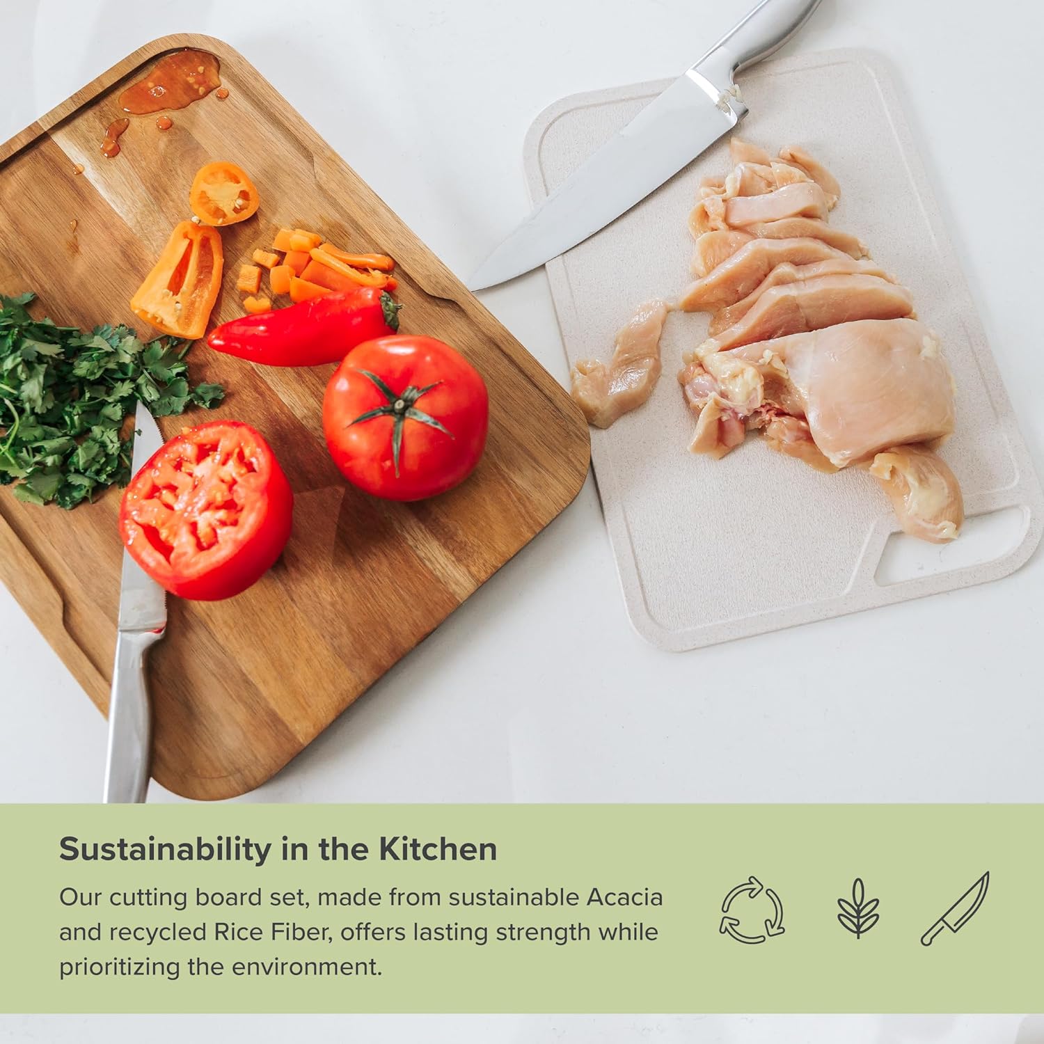 Acacia Cutting Board with Nesting Rice Fiber Chopping Board (15 x 11 in)