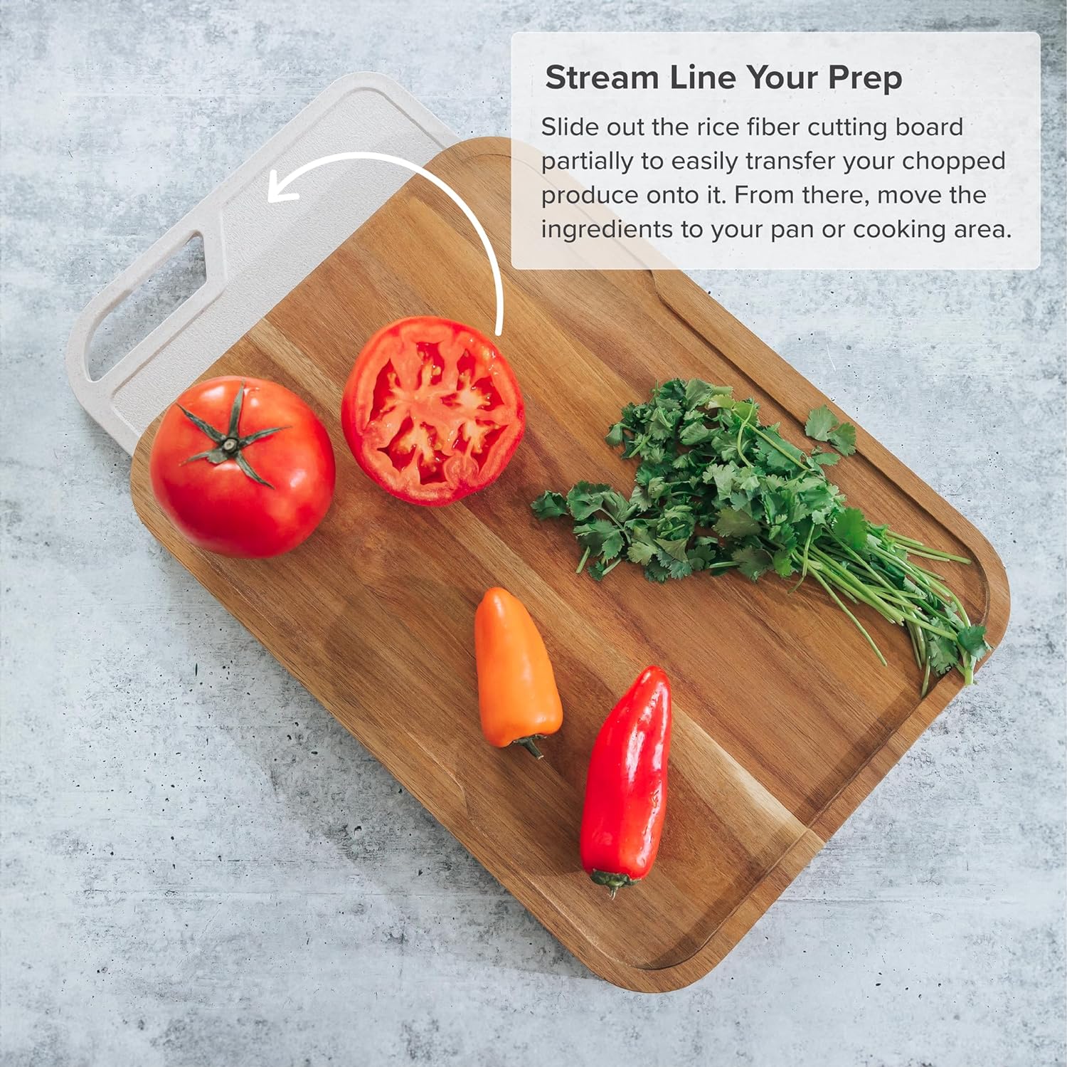 - Sustainably Crafted - This eco-friendly cutting board is made from rapidly growing acacia and rice fiber, transforming rice processing waste into a functional cutting board