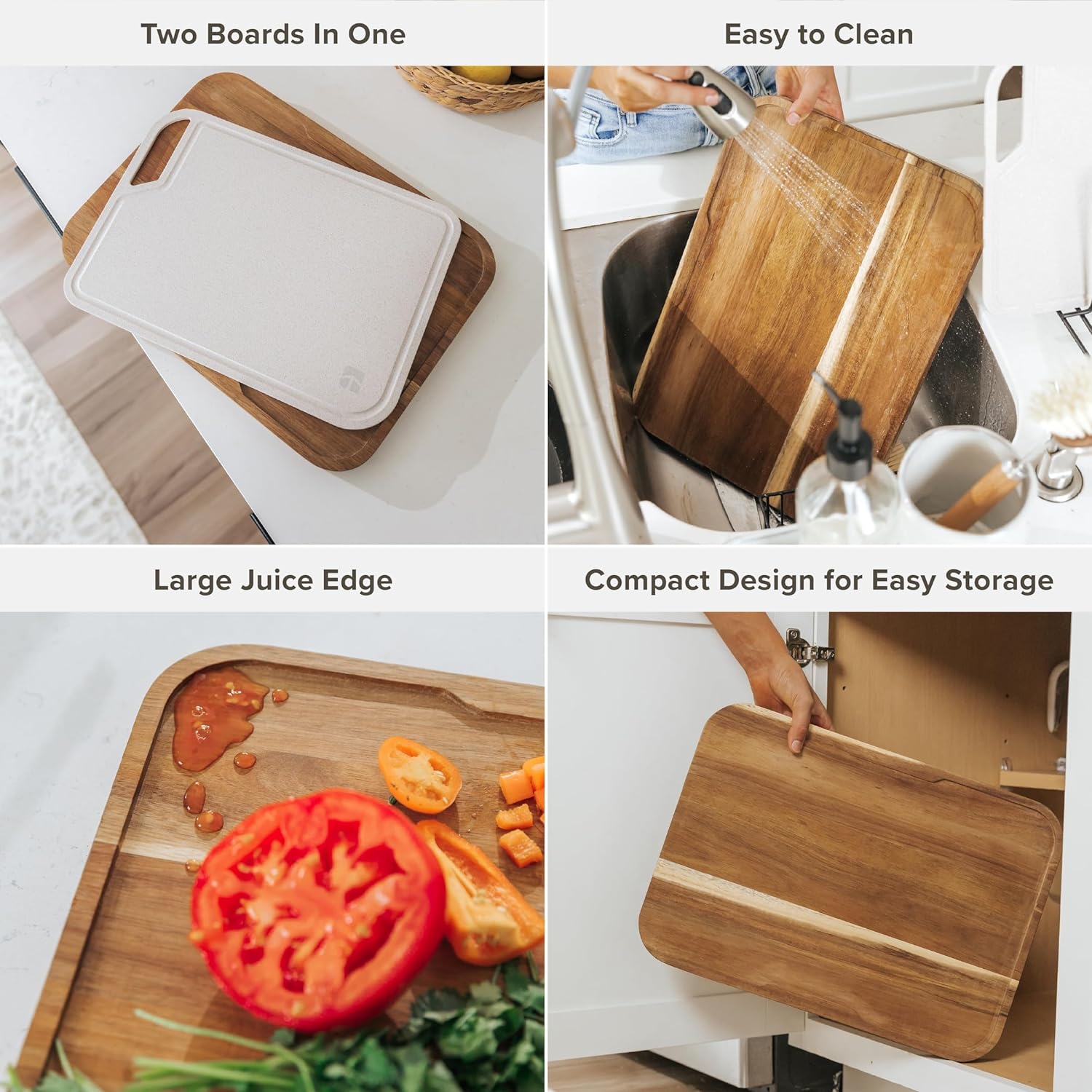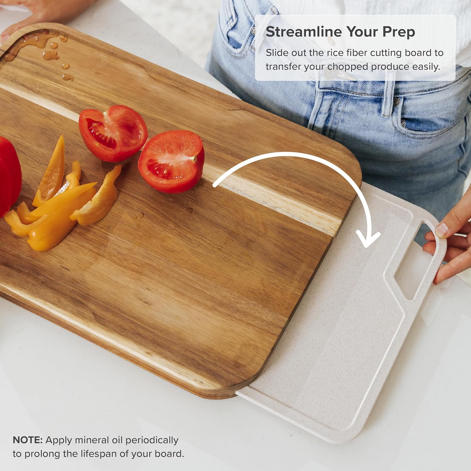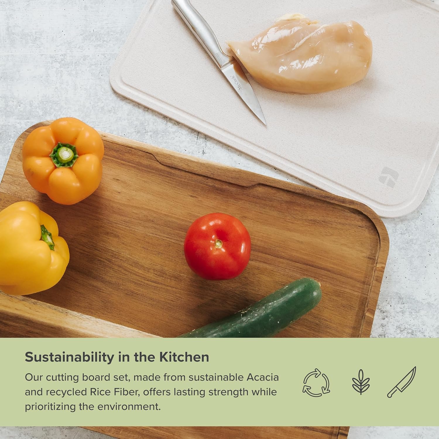 Acacia Cutting Board with Nesting Rice Fiber Chopping Board (17 x 12.5 in)
