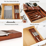 - Stable and Safe - In-drawer acacia block with non-slip silicone feet; secure and convenient, protects blades.