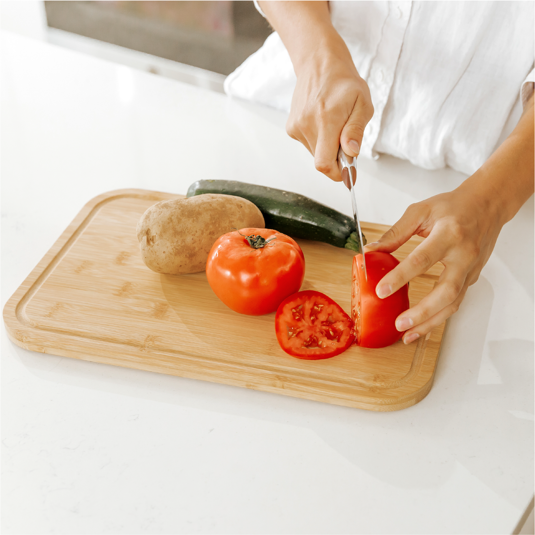 Enjoy three distinct cutting board sizes, giving you more flexibility in your food prep. Select the best size for your task - from dicing small herbs to carving large roasts, you’ll have the right board for the right job.