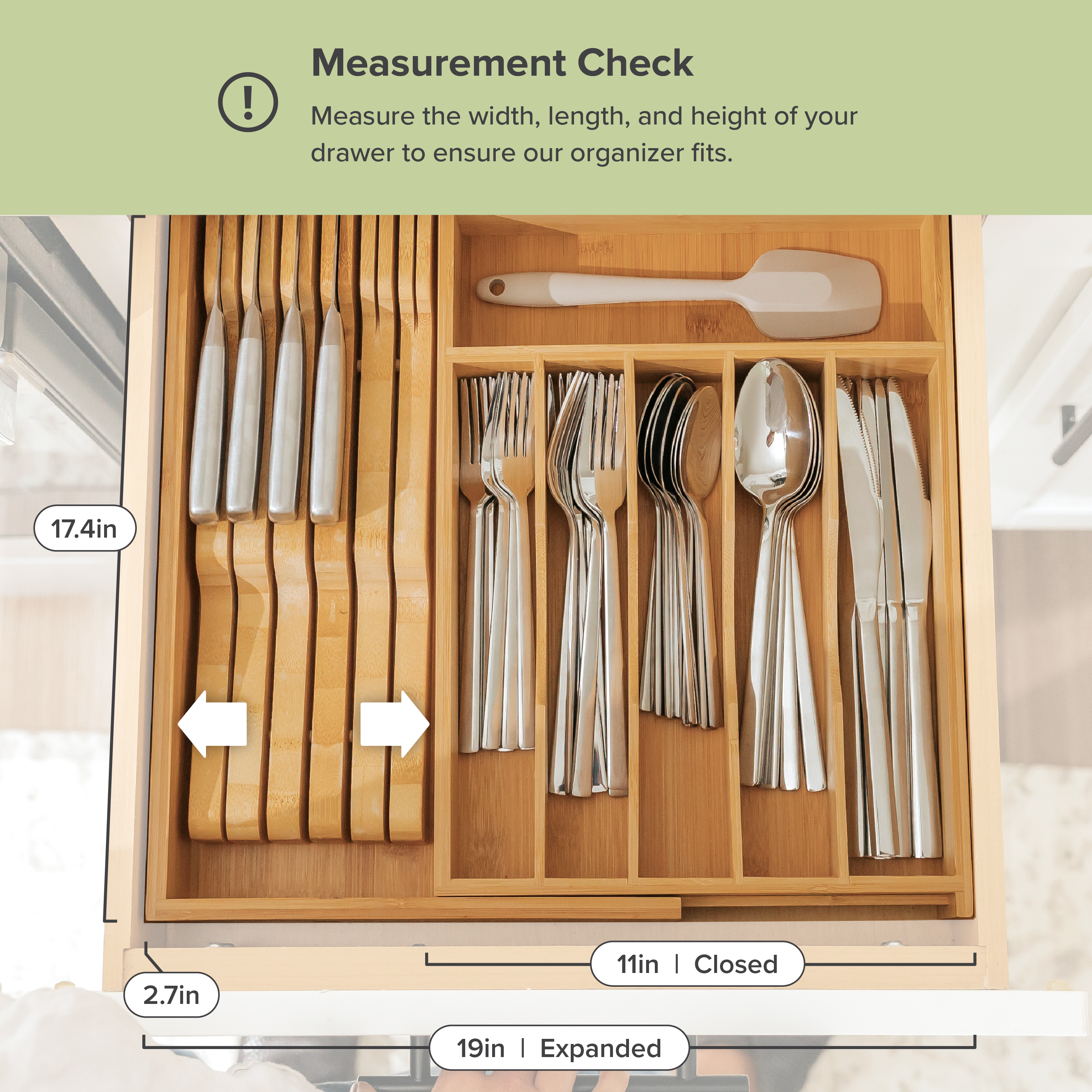 Bamboo Drawer Organizer for Silverware & Utensils (Expands 11-19in)