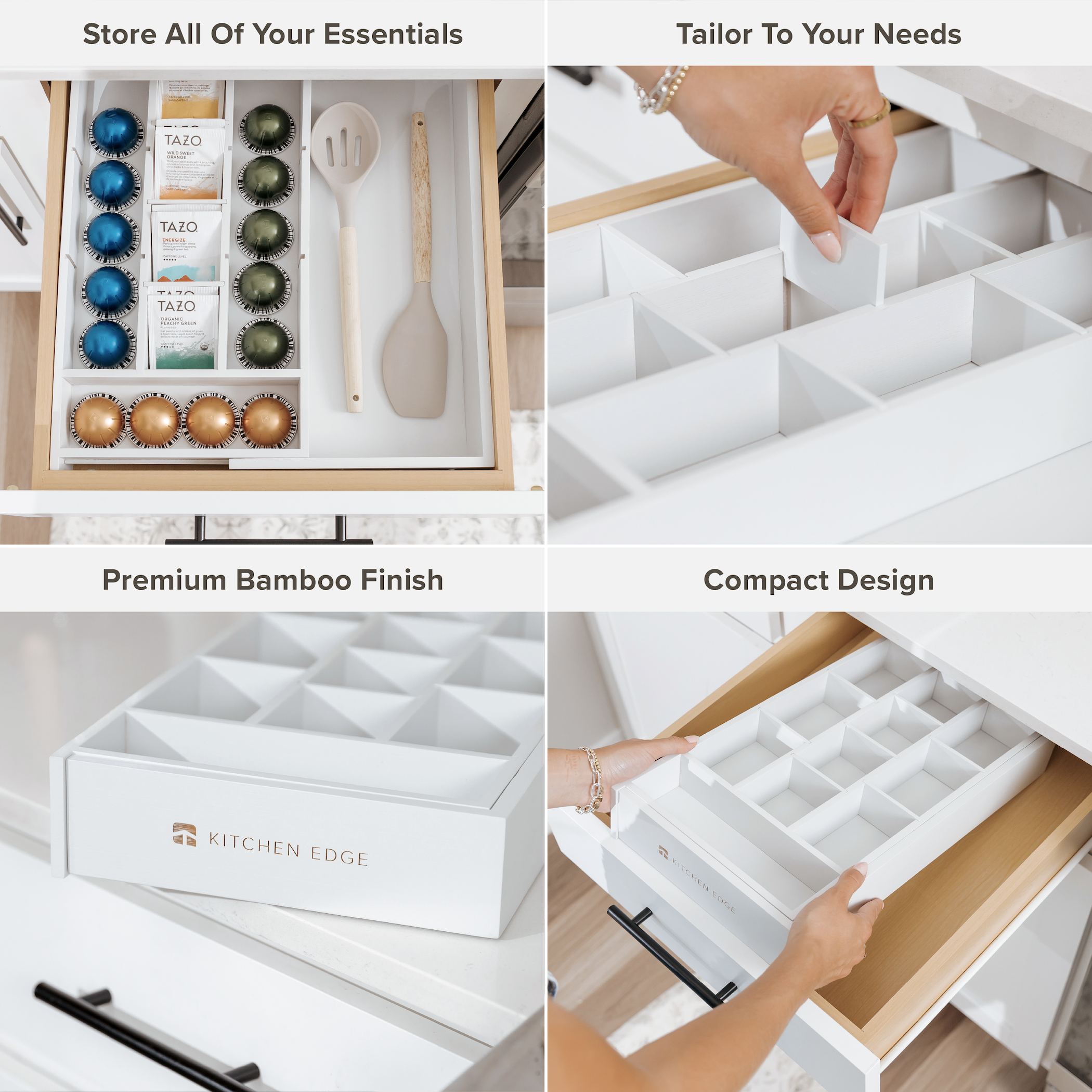 - Innovation And Quality At Its Finest - KitchenEdge’s white bamboo organizers are unmatched in design and quality. Each piece is made to the same premium specifications, ensuring consistency across your kitchen, no matter how many drawers you organize.