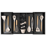 Revamp your kitchen with our Black Drawer Organizer, crafted from superior bamboo for style and environmental responsibility. Say farewell to disorderly drawers and welcome a clutter-free kitchen. The versatile design and adjustable compartments keep utensils, cutlery, and tools organized. Experience the joy of a meticulously organized kitchen.