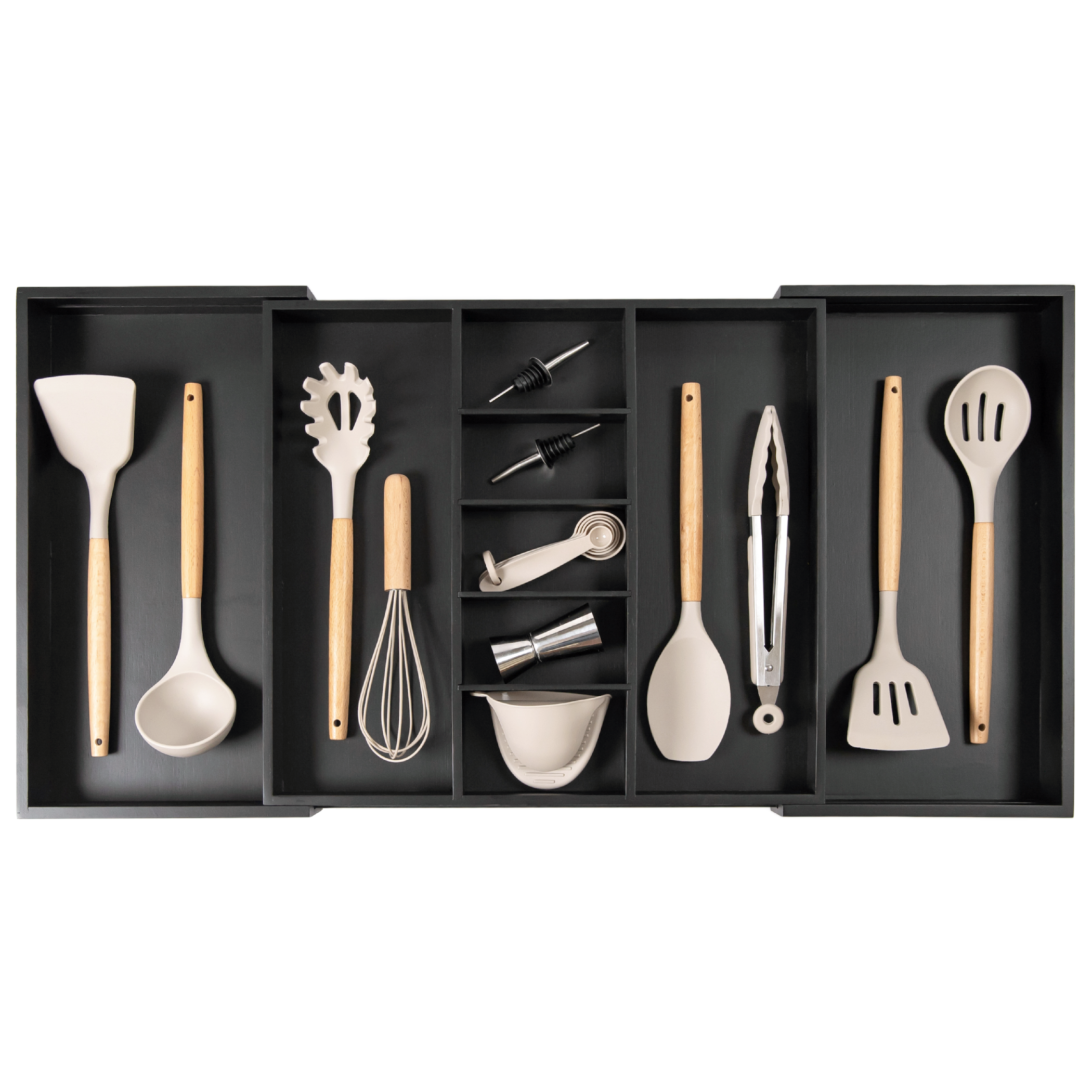 Bamboo Utensils & Junk Drawer Organizer - Black Finish (Expands 18.5-33in)