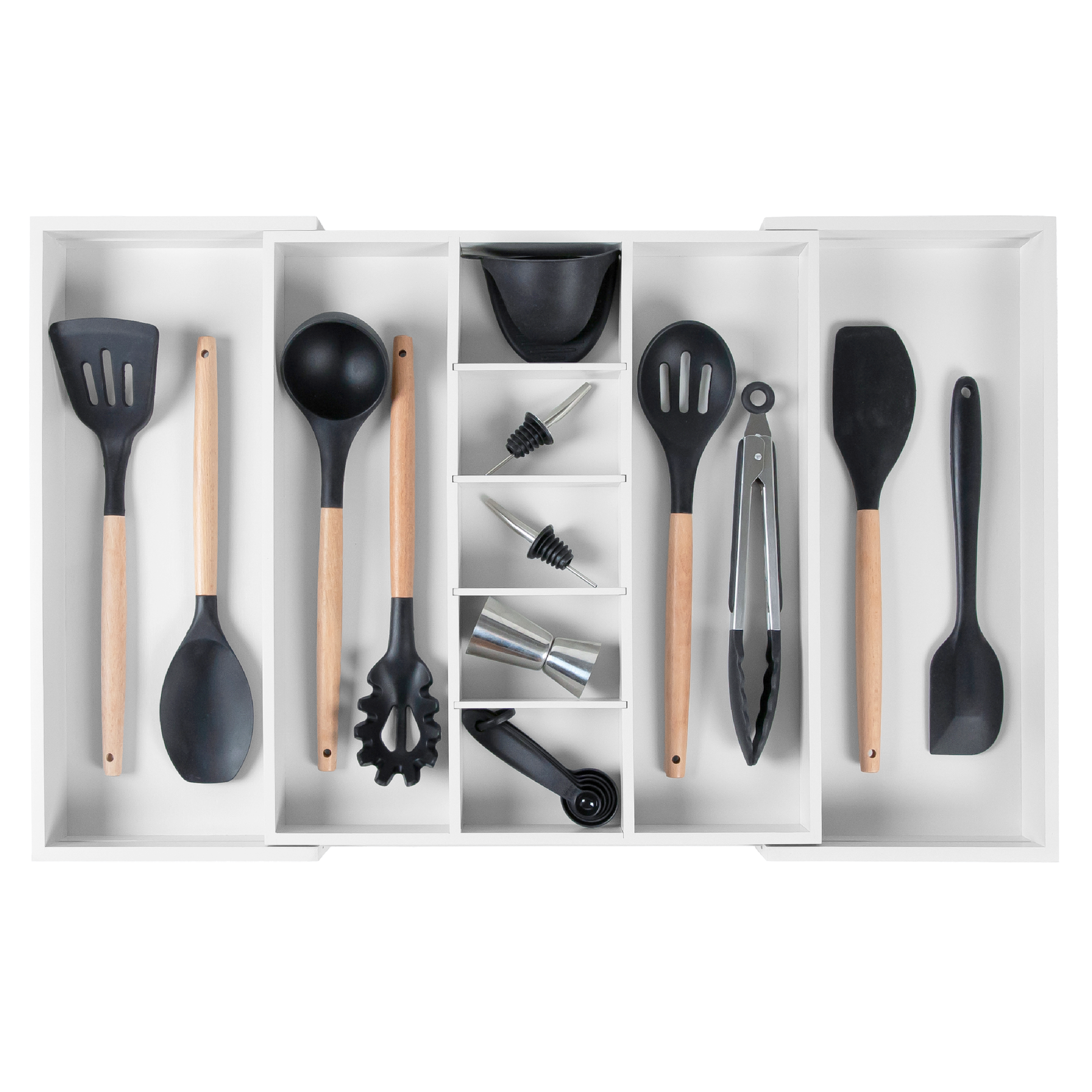 Bamboo Utensils & Junk Drawer Organizer - White Finish (Expands 16-28in)