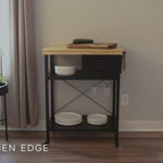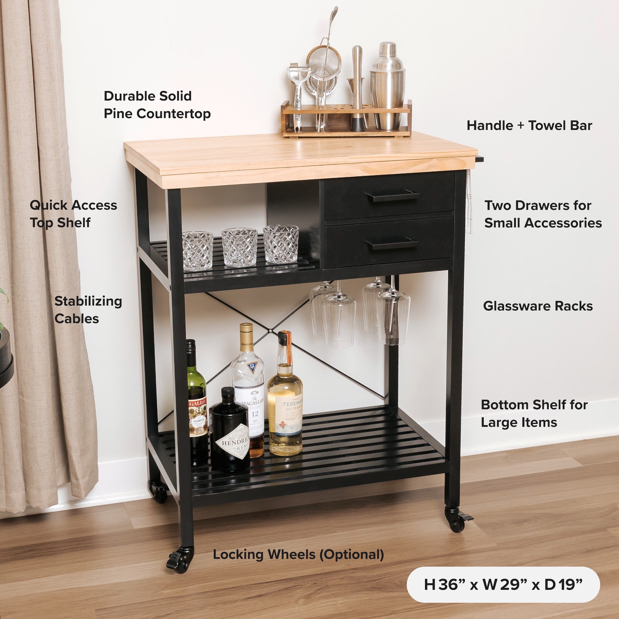 Kitchen Island Cart with Wheels - Pine Countertop & Black Base