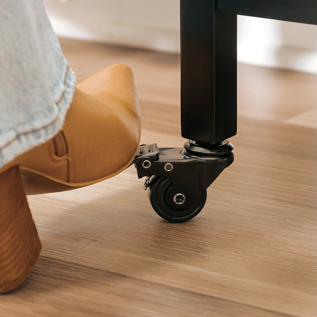 Designed to move when you need it and stay put when you don’t. This rolling kitchen island features smooth-glide wheels and secure locking casters for worry-free function.