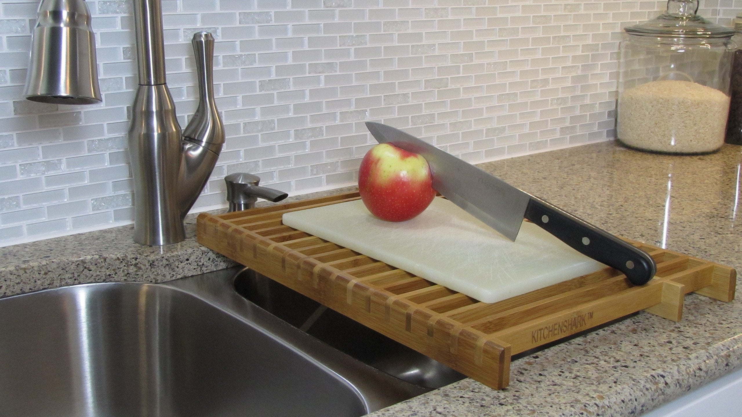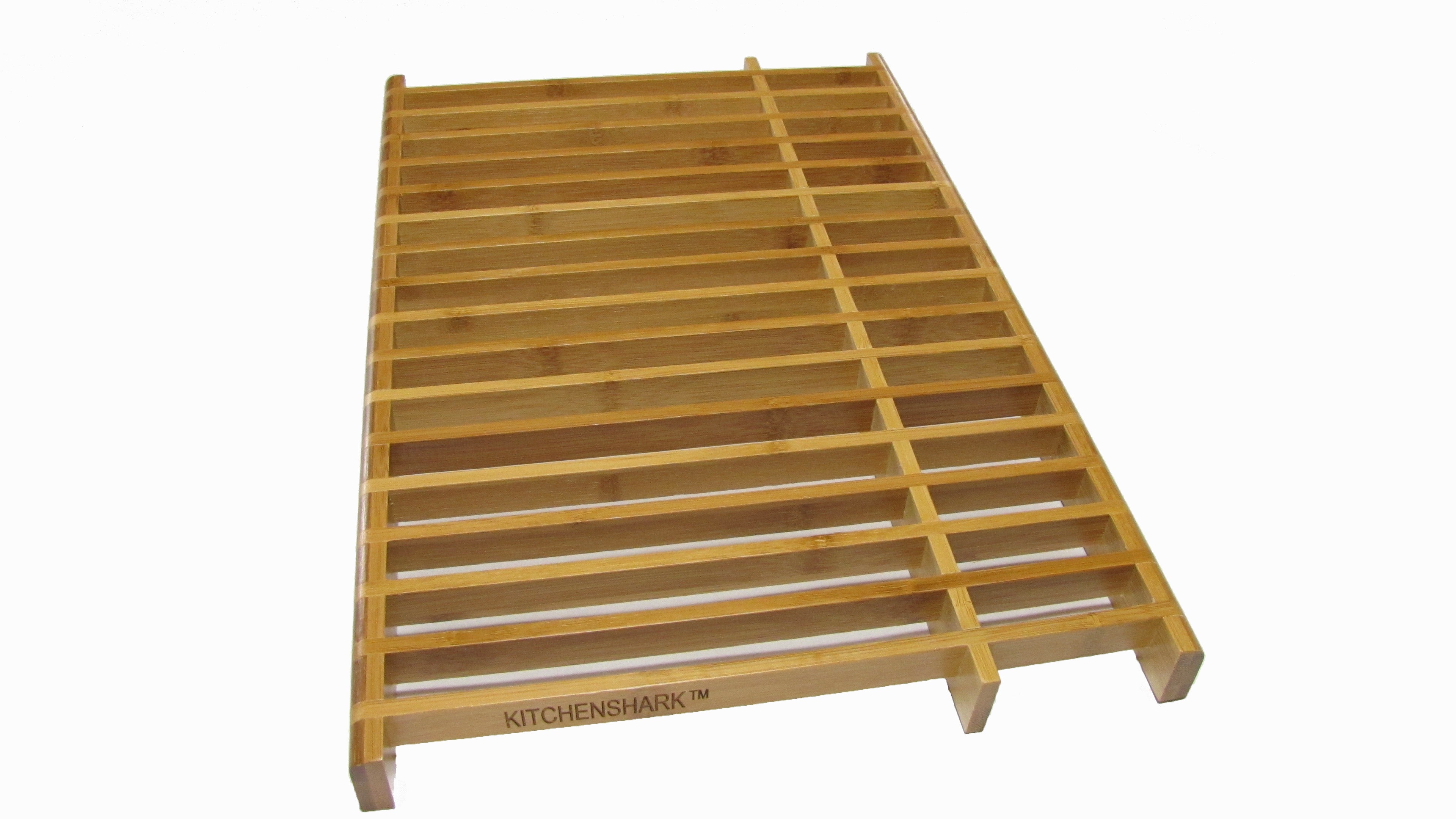 The KitchenEdge bamboo over-the-sink dish drying rack blends eco-friendly style with innovative design. Maximizing drying capacity, it securely holds delicate plates vertically. Use it over the sink or on a mat, and conveniently store it under the sink with dimensions of 18”L x 12”W x 1.25”H. Crafted from high-strength moso bamboo, it supports up to 20 pounds.