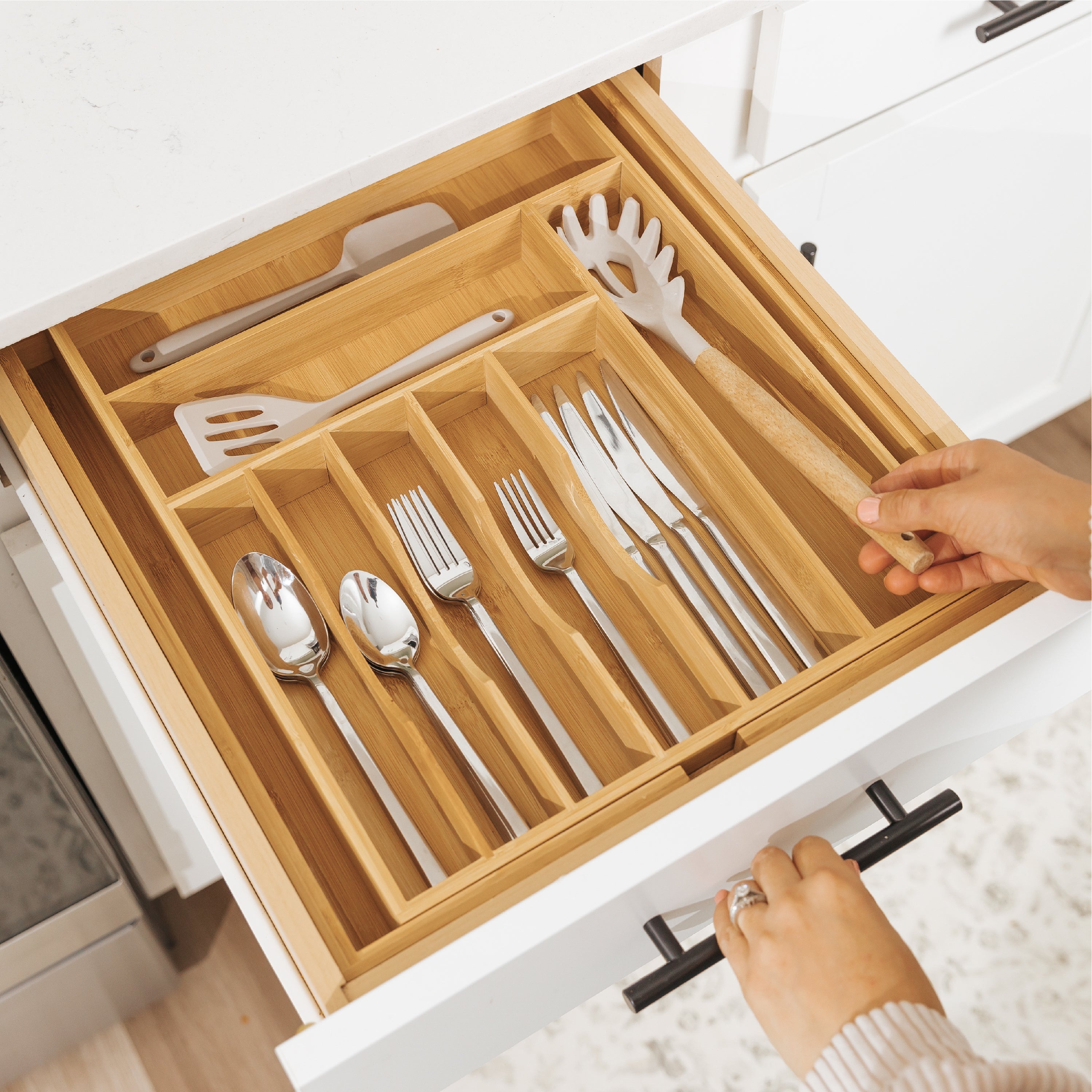Bamboo Drawer Organizer for Silverware & Utensils (Expands 14.5-25in)