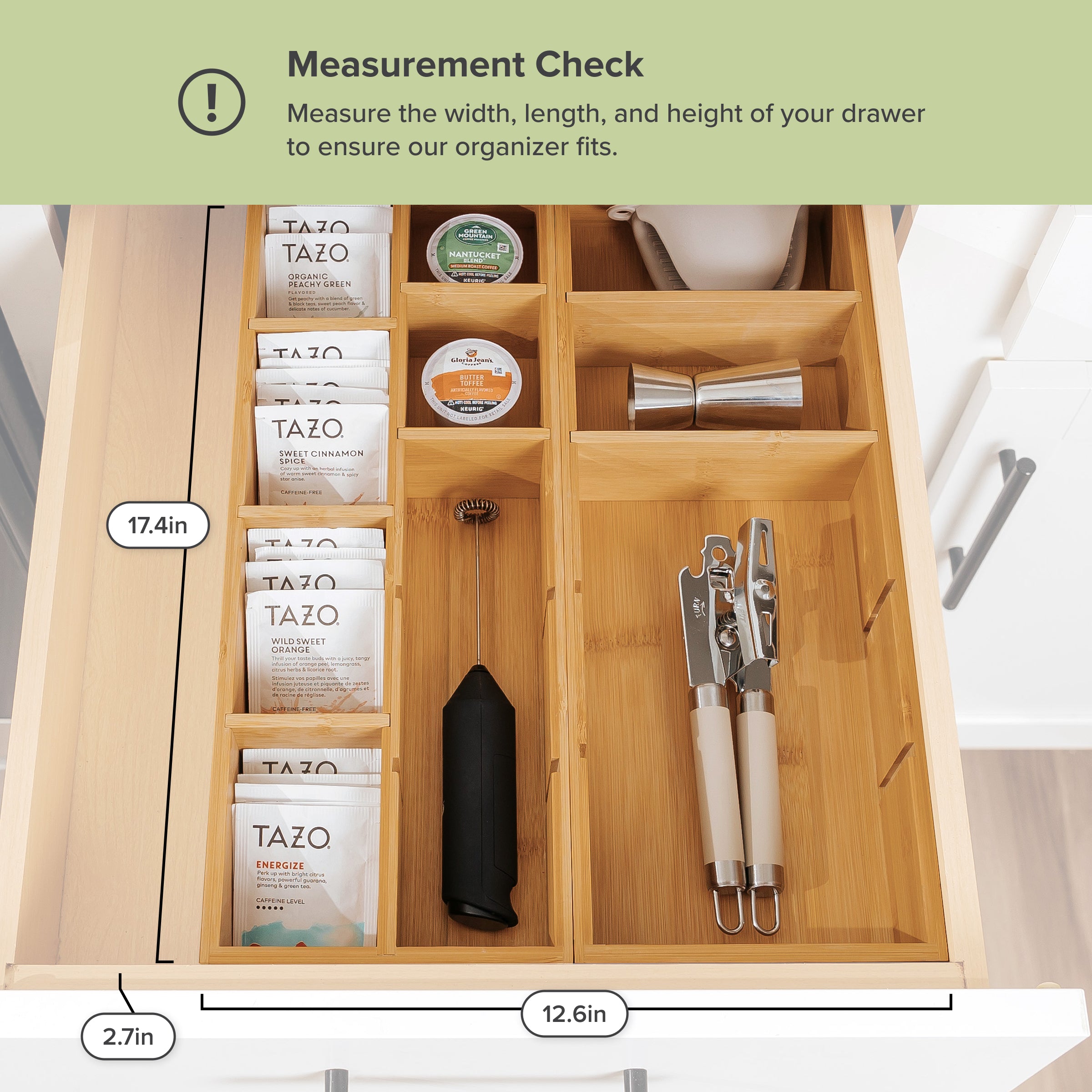 Elevate your kitchen drawer organization with this versatile 2-pack bundle, featuring our 9-slot Tea Bag Organizer and Customizable Utensil Organizer. Use the tea organizer to neatly store your favorite tea bags, coffee pods, or small essentials, while the utensil tray—with adjustable dividers—adapts to your unique kitchen tools. Both are crafted from durable, eco-friendly bamboo and designed to make the most of your drawer space. A smart, stylish upgrade for a tidier, more efficient kitchen.