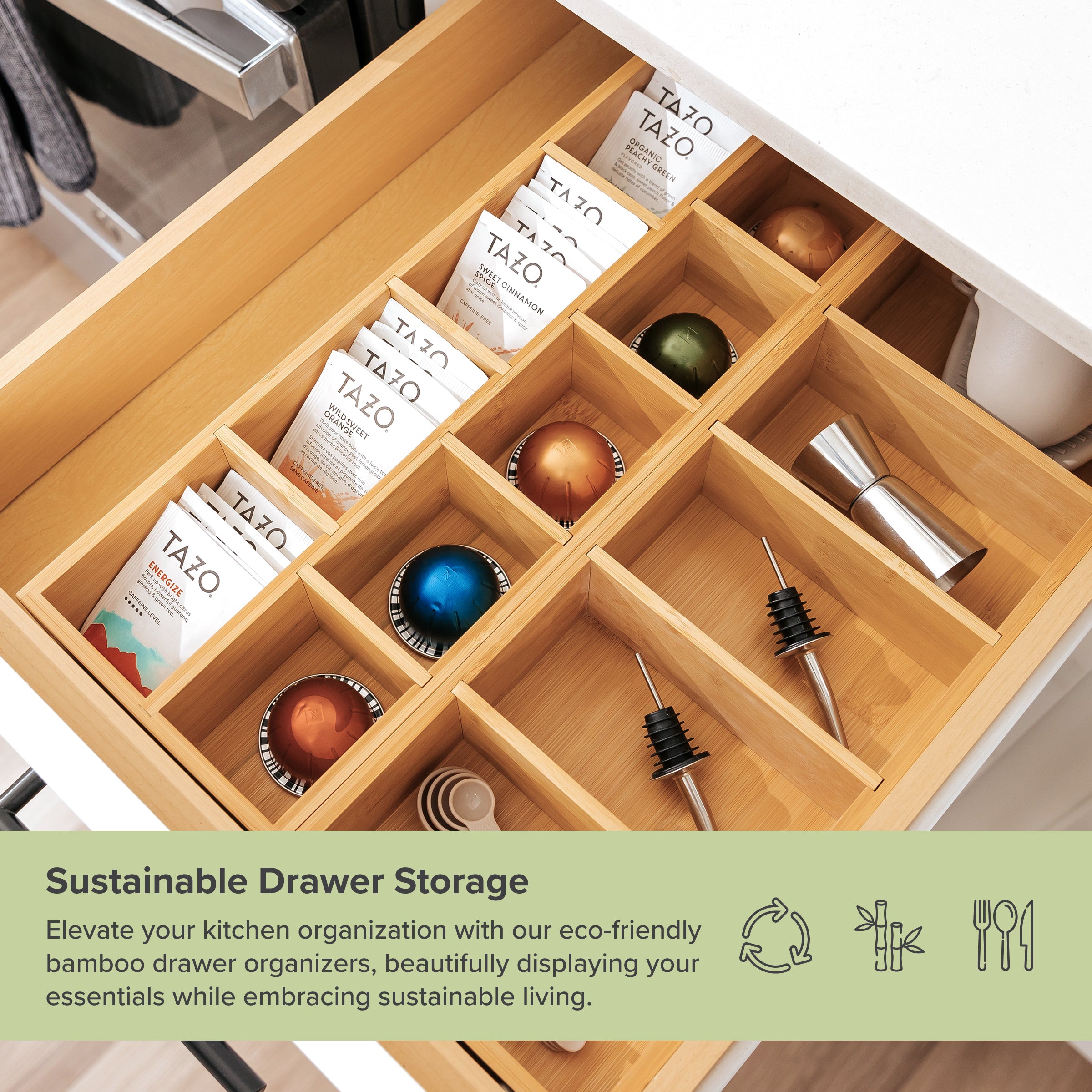 CUSTOMIZABLE STORAGE: 2-pack set with up to 14 compartments and removable dividers for utensils, tea bags, and more.