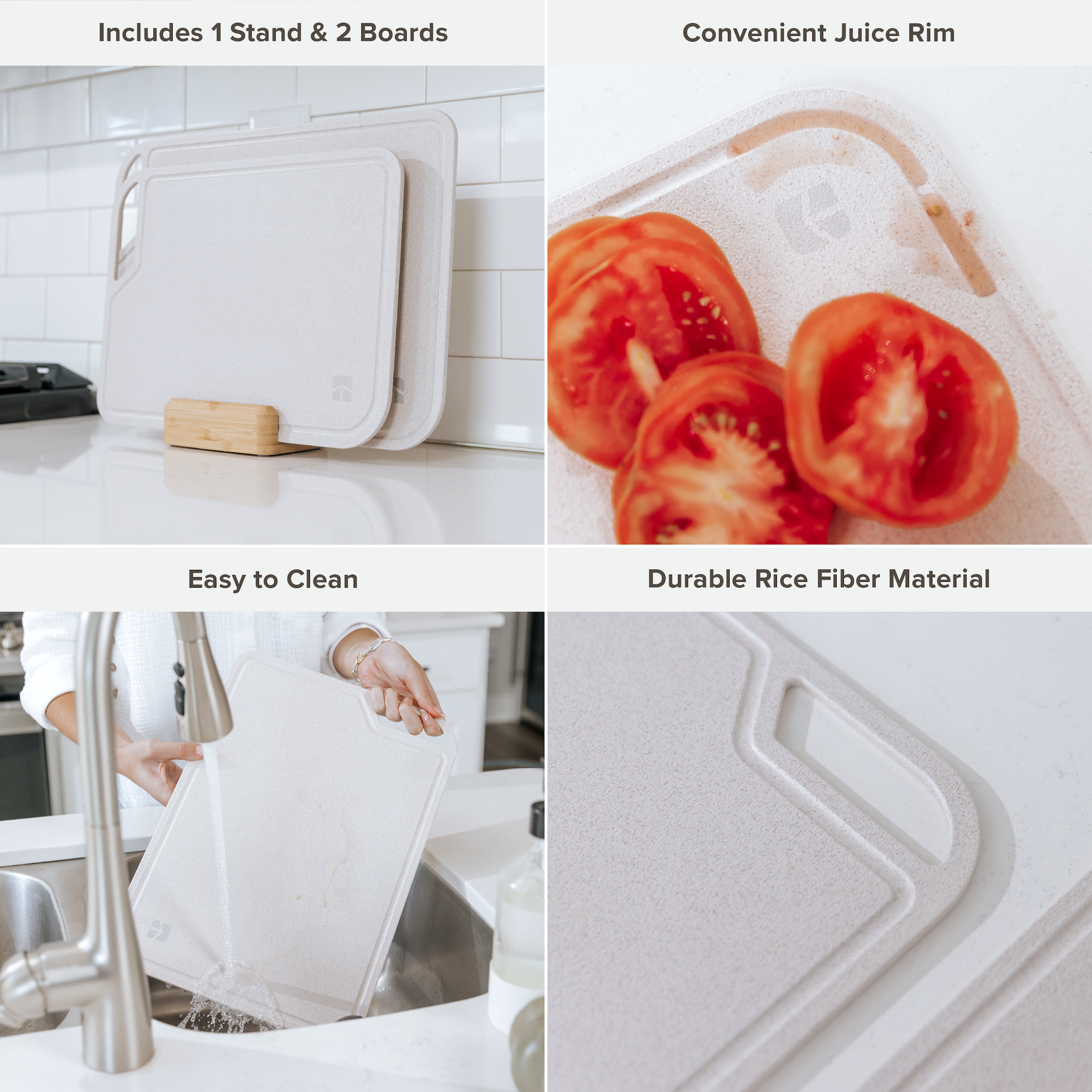 Rice Fiber Cutting Board Set with Bamboo Stand